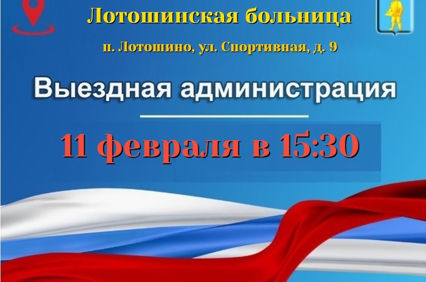 Очередная выездная администрация пройдет 11 февраля в здании Лотошинской больницы по адресу п. Лотошино, ул. Спортивная, д. 9
