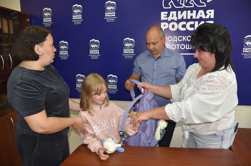 В общественную приемную партии за помощью уже обратилось несколько семей. Сегодня по одному из обращений председатель местного Совета сторонников партии «Единая Россия» Александр Шагиев и депутат Совета депутатов муниципального округа Лотошино Ольга Цыганок вручили семье школьный портфель и набор канцелярских принадлежностей.