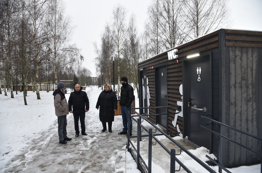 Заместитель главы муниципального округа Лотошино Александр Шагиев проверил ход работ в сквере «Славянской дружбы», где осмотрел уже готовые объекты и пообщался с подрядчиком. Так, буквально сегодня завершился монтаж общественного туалета в сквере, заместитель главы и специалисты осмотрели объект. Туалет уже подключён к электричеству, воде. Кроме того он оборудован пандусом для маломобильных граждан.