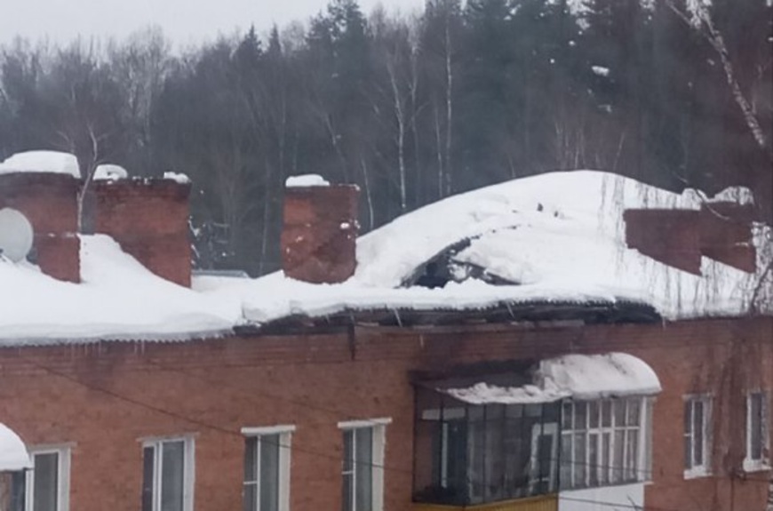 Уважаемые жители! Сегодня из-за неблагоприятных погодных факторов произошло проседание кровли на доме 25 в поселке Новолотошино.