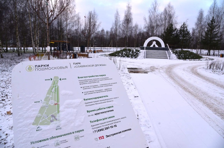 В рамках реализации народной программы завершено благоустройство территории парка «Славянской дружбы» в посёлке Лотошино. Общая площадь благоустройства, начавшегося в августе, составила 2,85 гектара. По наказам жителей в парке построили пешеходные дорожки, смонтировали детскую игровую и спортивную площадки, высадили кустарники и деревья, установили лавочки, фонари и урны, сделали навигацию и установили видеонаблюдение. Сам памятник славянской дружбе отреставрирован. Здесь же на территории парка установлена пятиметровая стела «Населённый пункт воинской доблести» в честь присвоения посёлку Лотошино этого звания в 2020 году.