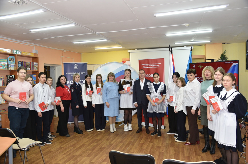 Также ребят поздравили председатель Совета депутатов округа Алексей Куликов и временно исполняющий обязанности начальника ОВМ ОМВД России «Лотошинский» капитан полиции Ирина Байкова, а от «Движения Первых» юноши и девушки получили фирменные обложки паспортов и значки. Кроме того ребятам подарили книжки с Конституцией России.