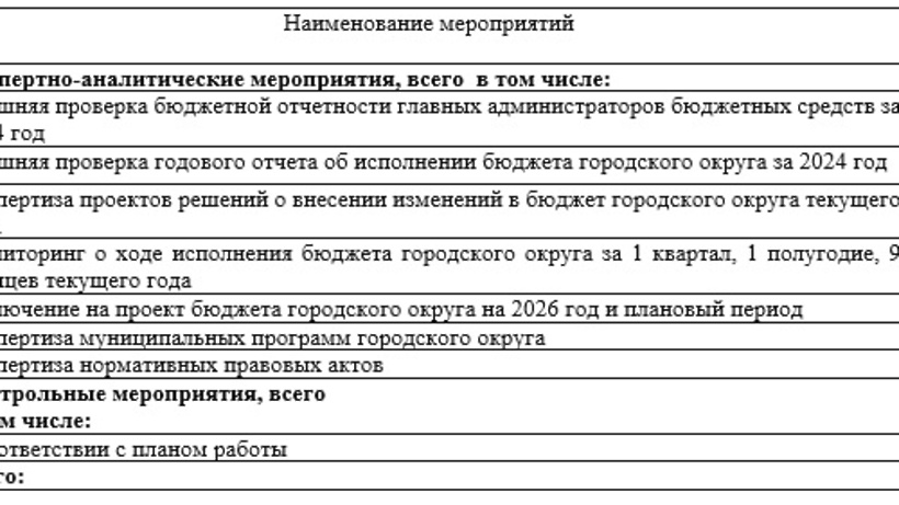 В отчётном периоде Контрольно-счетная палата провела 80 контрольных и экспертно-аналитических мероприятия. Анализ мероприятий, проведённых в 2025 году, представлен в следующей таблице: