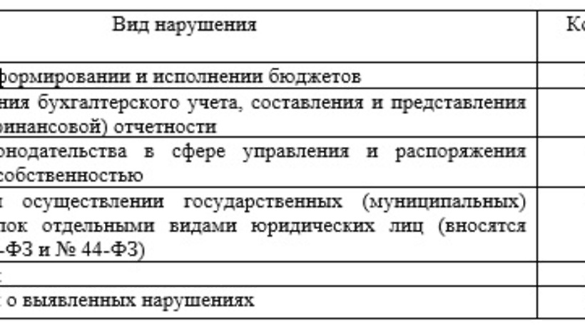 Установленные, в результате проведенных контрольных и экспертно-аналитических мероприятий в 2025 году, нарушения классифицированы в соответствии с Классификатором нарушений, выявляемых в ходе внешнего государственного аудита (контроля), одобренным Советом контрольно-счетных органов при Счетной палате Российской Федерации.