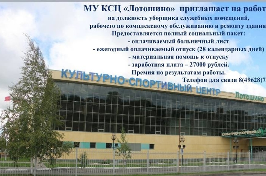 КСЦ «Лотошино» приглашает на работу!