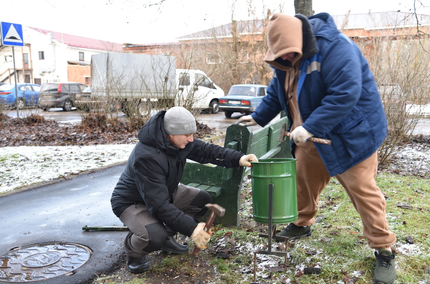 Сотрудники «Благоустройства» выполнили сразу два обращения жителей дома 21 по Центральной улице. Как рассказал директор «Благоустройства» Сергей Бондарчук, рабочие поставили три новые урны у подъездов дома, взамен старых, у которых сломались крепления. Кроме того, коммунальщики спилили сломанные ветки у дерева, растущего на придомовой территории. Житель в своём обращении отмечал, что ветви могли зацепить подъезжающие к дому автомобили.