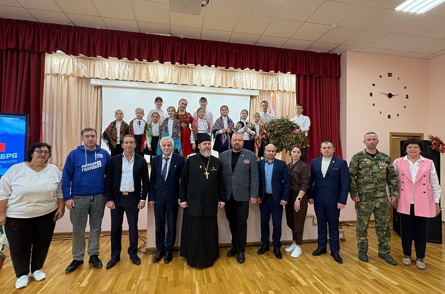 В преддверии Дня народного единства в Лотошинской СОШ №2 прошло торжественное мероприятие - ученики и педагоги школы подготовили большую программу с песнями, стихами, видеопоздравлениями от учащихся. Гостями школы в этот день стали: Председатель Совета депутатов Алексей Куликов, первый заместитель главы округа Александр Шагиев, руководитель Лотошинского отделения «Боевого братства» Сергей Семечкин и ветераны отделения, руководитель "Молодой гвардии" Сергей Яковлев, настоятель Покровского храма деревни Нововасильевское Сергий Жарков.