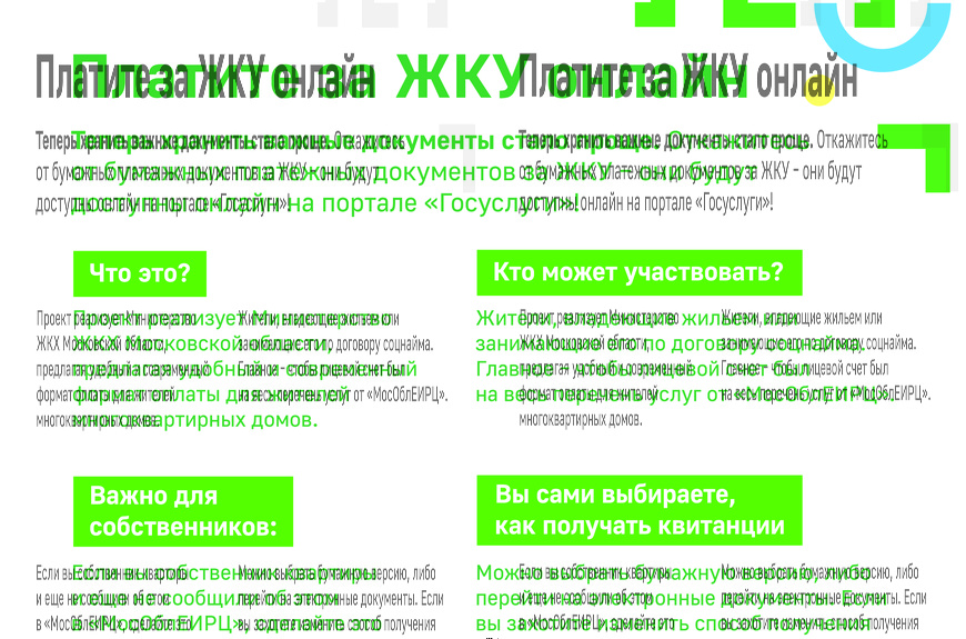 ℹЭкспериментальная программа реализуется на основании Постановления Правительства РФ № 126 «О проведении на территории Московской области эксперимента по направлению платежного документа для внесения платы за жилое помещение и коммунальные услуги в многоквартирных домах в электронной форме без дублирования на бумажном носителе».