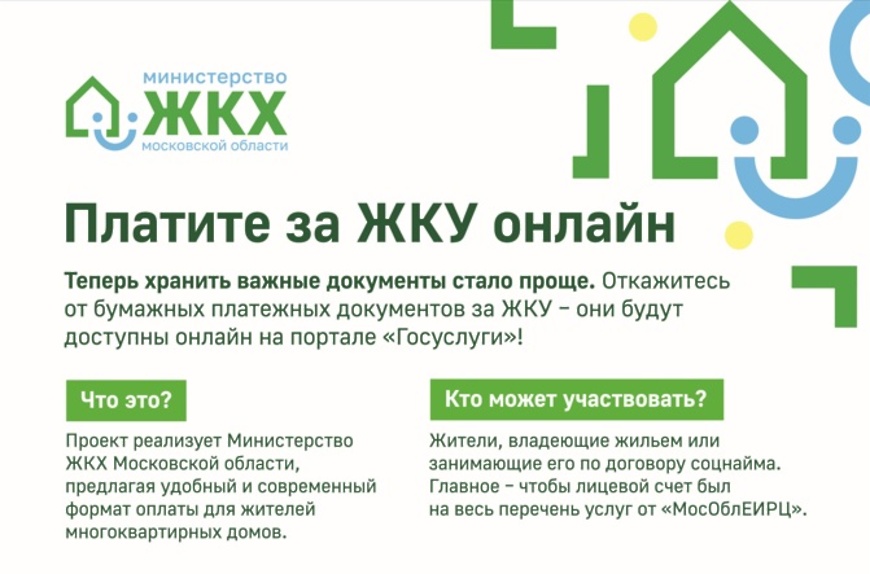 Министерство жилищного-коммунального хозяйства Московской области запустило пилотный проект, который позволит собственникам получать платежные документы в электронном виде на региональном портале Госуслуг (uslugi.mosreg.ru/epd)