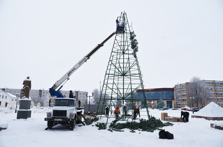 В демонтаже участвовали сотрудники муниципального учреждения «Олимп», также для высотных работ задействовали вышку лотошинского «Благоустройства». Сначала рабочие сняли игрушки и гирлянды, затем — ветки. В последнюю очередь разобрали металлический каркас.