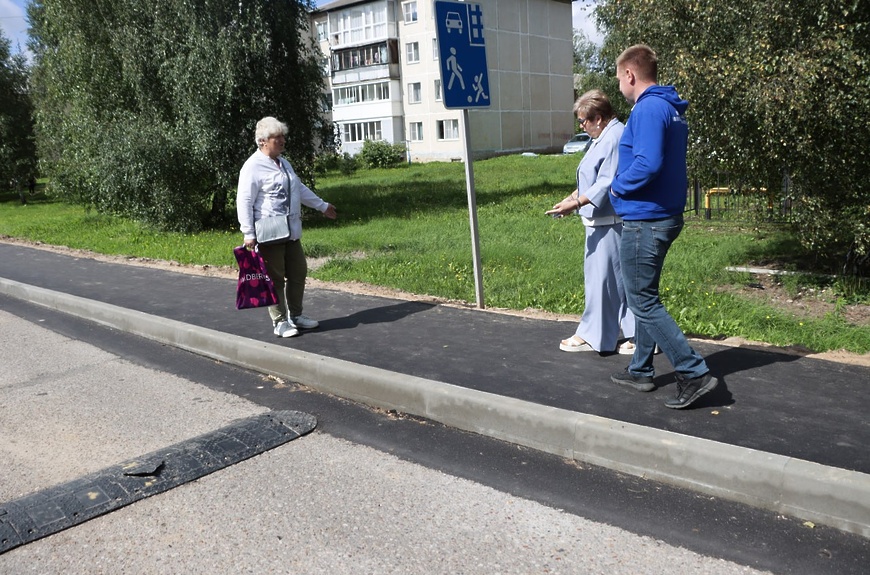 Проверить тротуар пришли депутаты Совета депутатов муниципального округа Лотошино Сергей Яковлев и Марина Коноплева. Вместе с жителями и сторонниками партии «Единая Россия» они осмотрели выполненные работы.
