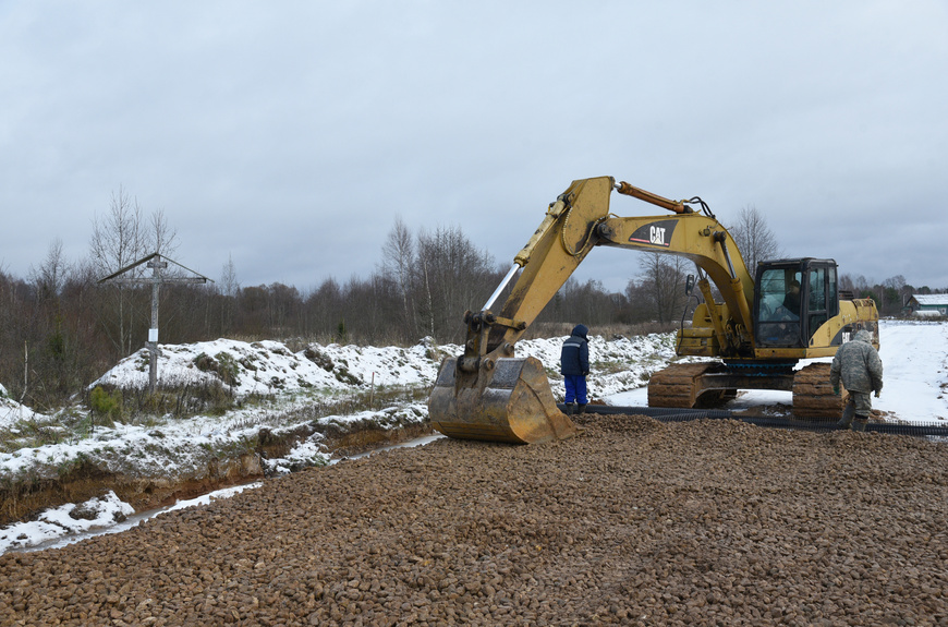 Рабочие завершают строительство дороги от деревни Егорье до деревни Грибаново протяжённостью 2,5 километра. Строители укрепили полотно дороги песком, сейчас делают кюветы и отсыпают покрытие щебнем.
