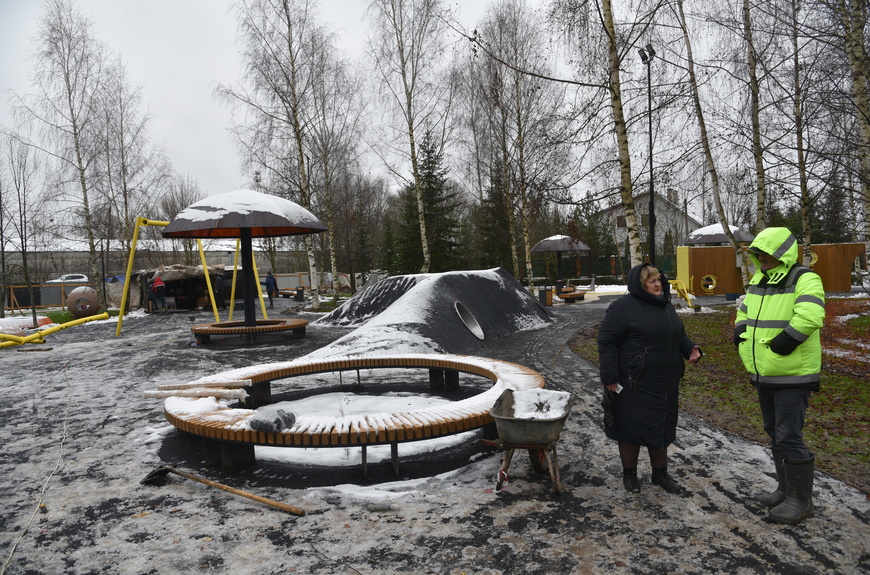 Рабочие построили пешеходные дорожки, смонтировали детскую и спортивную площадку, высадили кустарники и деревья, установили лавочки, фонари и урны.