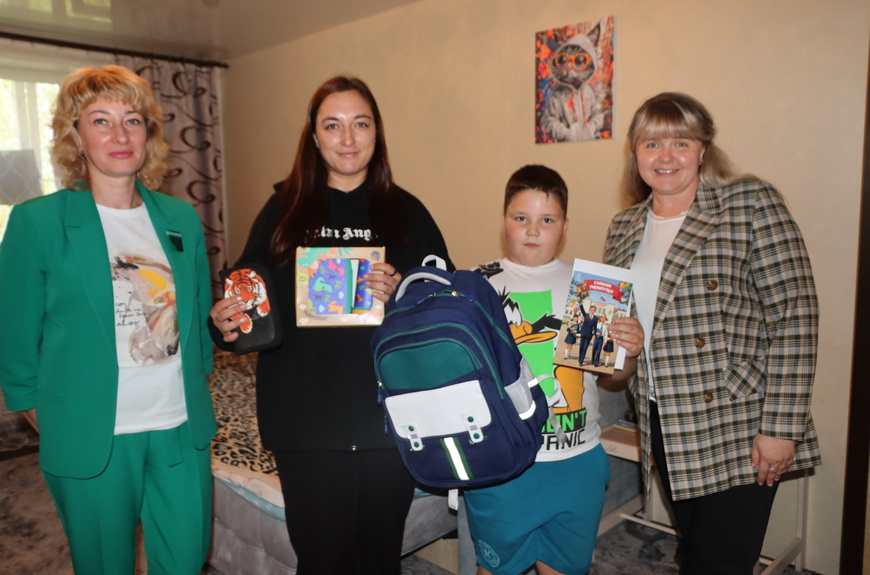 Сегодня глава муниципалитета вручила одной из семей набор для школьника – рюкзак и полный канцелярский набор.