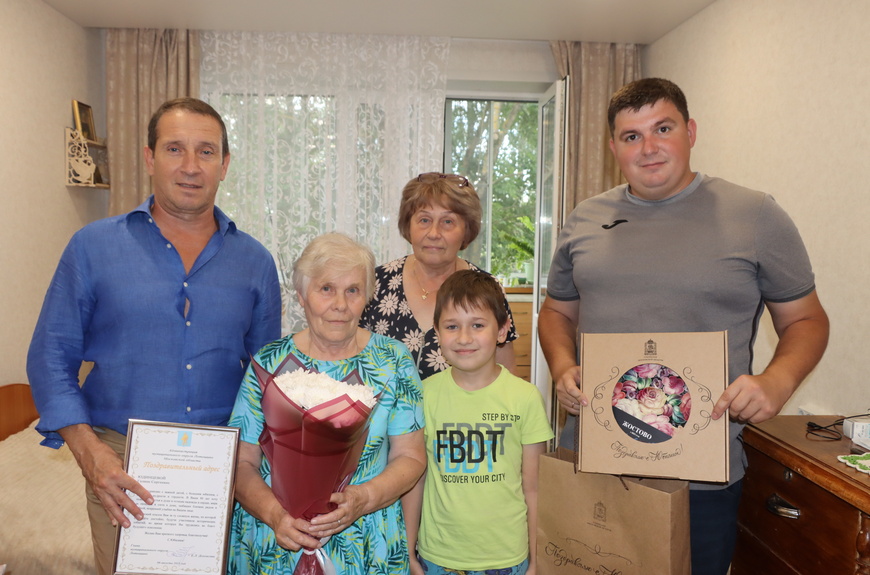 Председатель Совета депутатов муниципального округа Лотошино Алексей Куликов и депутат местного Совета Кирилл Камынин приехали к Галине Сергеевне, чтобы вручить ей поздравления и подарки от главы муниципального округа Лотошино Екатерины Долгасовой и Губернатора Подмосковья Андрея Воробьева.