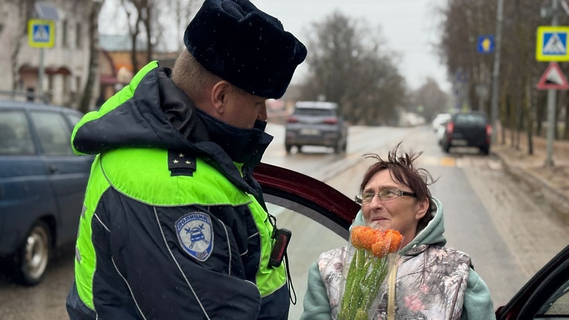 Дорожные полицейские поздравили женщин-водителей с наступающим весенним праздником, пожелали счастья, отличного настроения и, конечно, безопасных дорог, вручили цветы и угостили стаканчиком чая.