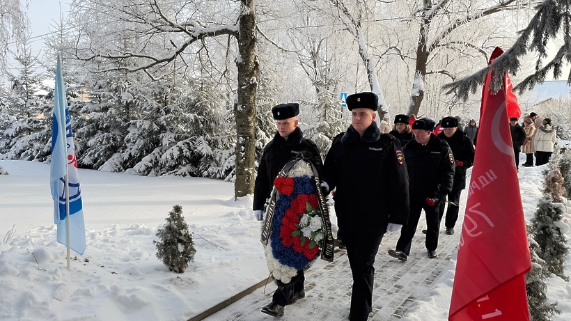 Собравшиеся почтили память героев минутой молчания и возложили цветы к мемориалу.