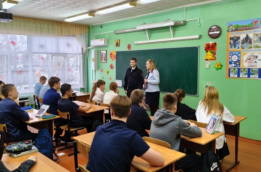Сотрудники полиции рассказали школьникам о деятельности участковых уполномоченных полиции, отметив, что основной задачей является профилактическая работа по предотвращению правонарушений и преступлений, поделились историями из профессиональной жизни.