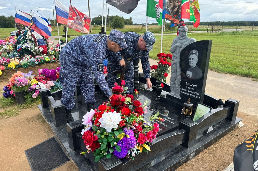 В годовщину гибели сотрудники Волоколамского ОВО посетили могилу бывшего коллеги, прапорщика полиции Аносова Сергея Александровича, погибшего год назад при выполнении боевого задания в зоне специальной военной операции.