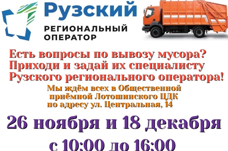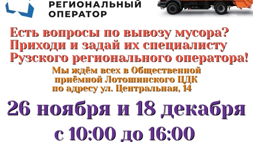 Специалист «Рузского регионального оператора» будет принимать жителей 26 ноября и 18 декабря