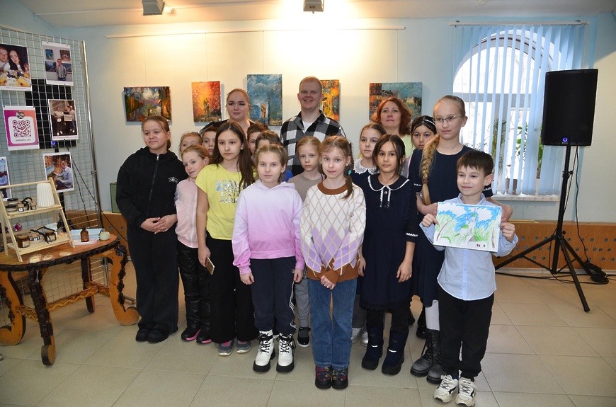 Гости музея, а среди них было много детей, обучающихся в Детской школе искусств, смогли лично пообщаться с художниками, узнать из первых уст секреты создания картин и авторских предметов интерьера.