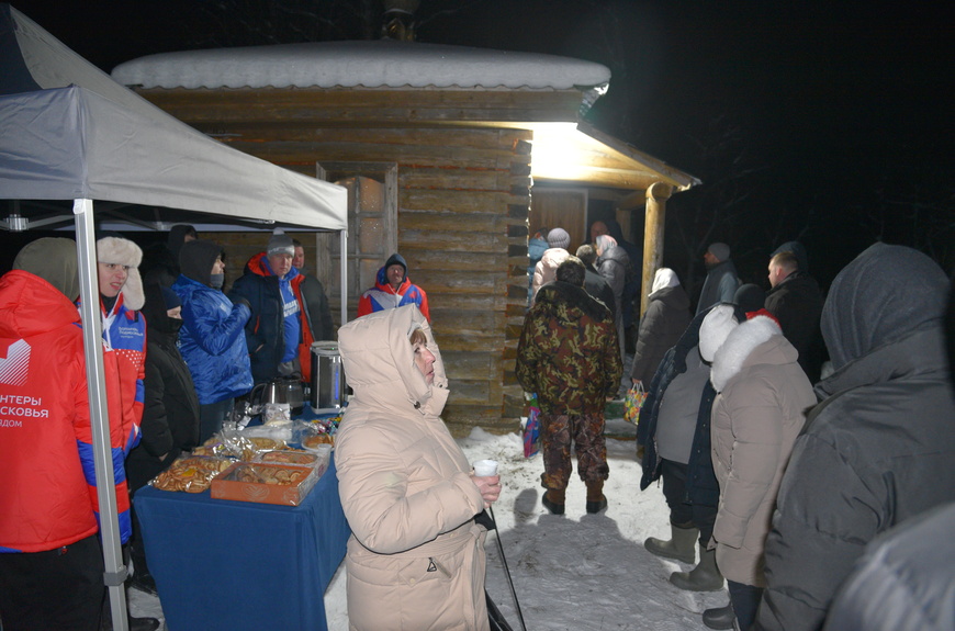 Для обеспечения безопасности на территории храма дежурили сотрудники полиции, медик, спасатели. А волонтёры Подмосковья развернули палатку, где угощали всех желающих горячим чаем и вкусняшками.