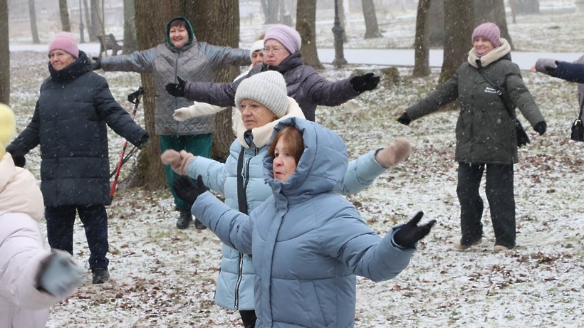После зарядки многие продолжили прогулку по парку, наслаждаясь зимним пейзажем и свежим воздухом.