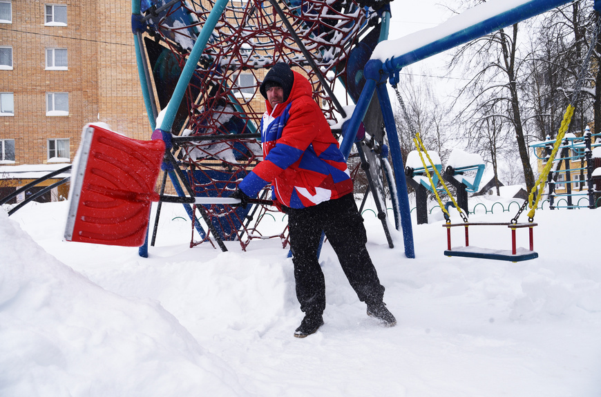 Волонтёры Подмосковья почистили от снега детскую игровую площадку «Космос», расположенную в центре посёлка Лотошино. Они убрали снег возле качелей, лавочек, основных архитектурных элементов. При этом снегопад в Лотошине за последнее время достиг такой интенсивности, что даже почищенная несколько дней назад коммунальщиками площадка успела зарасти сугробами в 20–30 сантиметров.