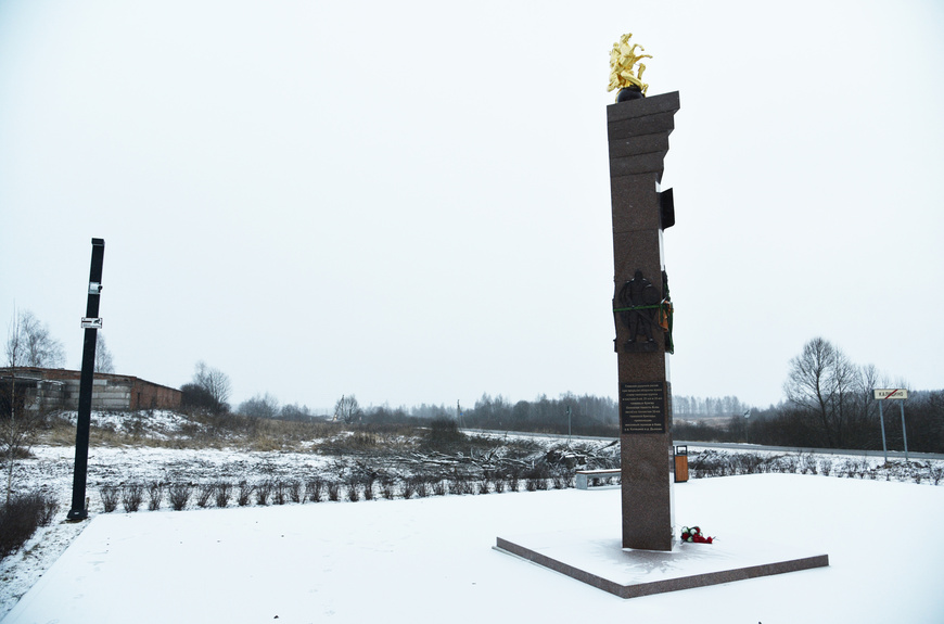 Место для установки стелы в Калицино выбрали сами жители деревни. Территория объекта занимает 0,1 гектара, высота стелы составляет 5,4 метра, она выполнена из натурального красного гранита.